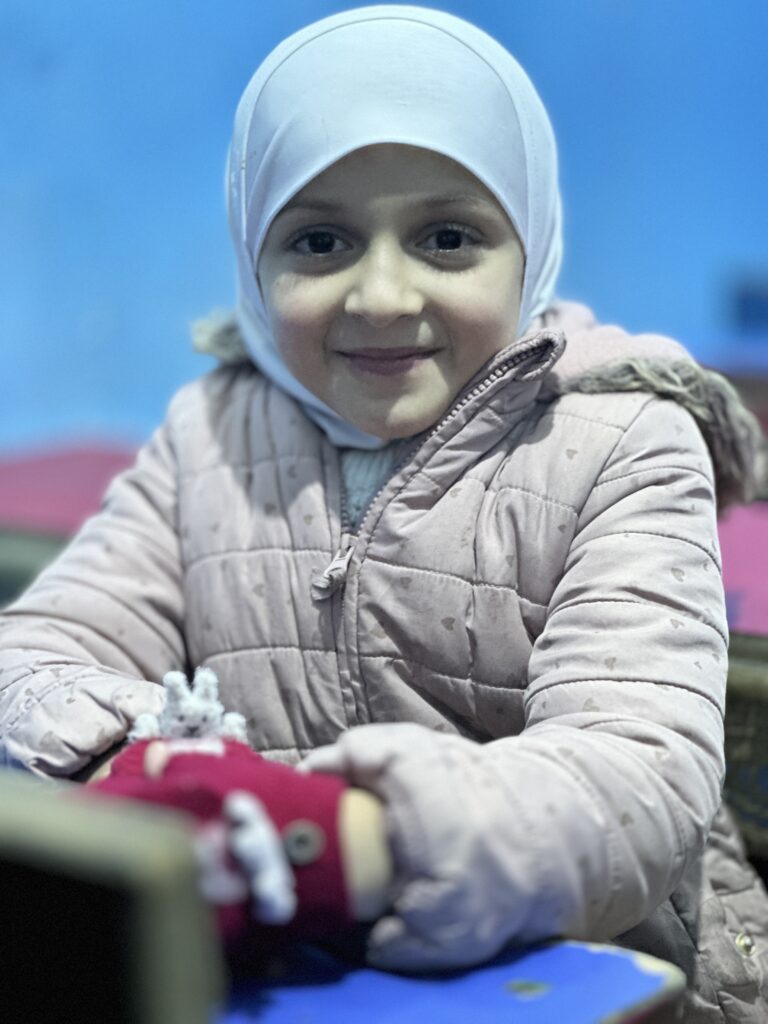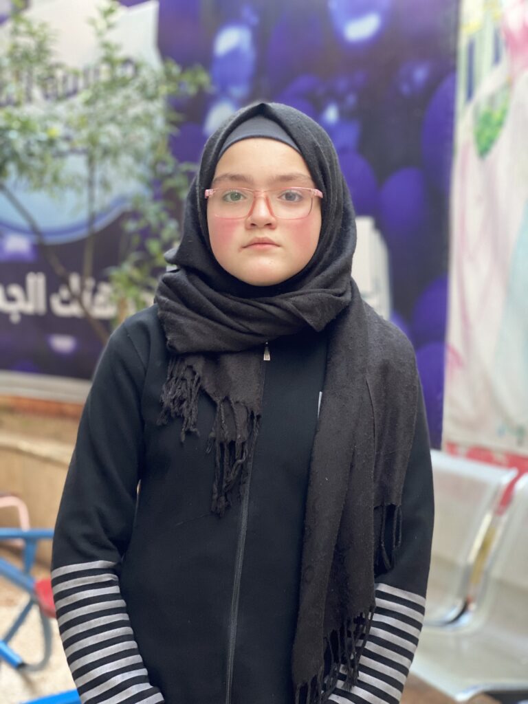 Zahraa and her family fled to Idlib, to a shelter in a sports hall, without a home.